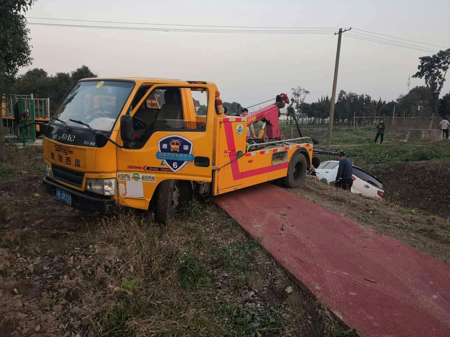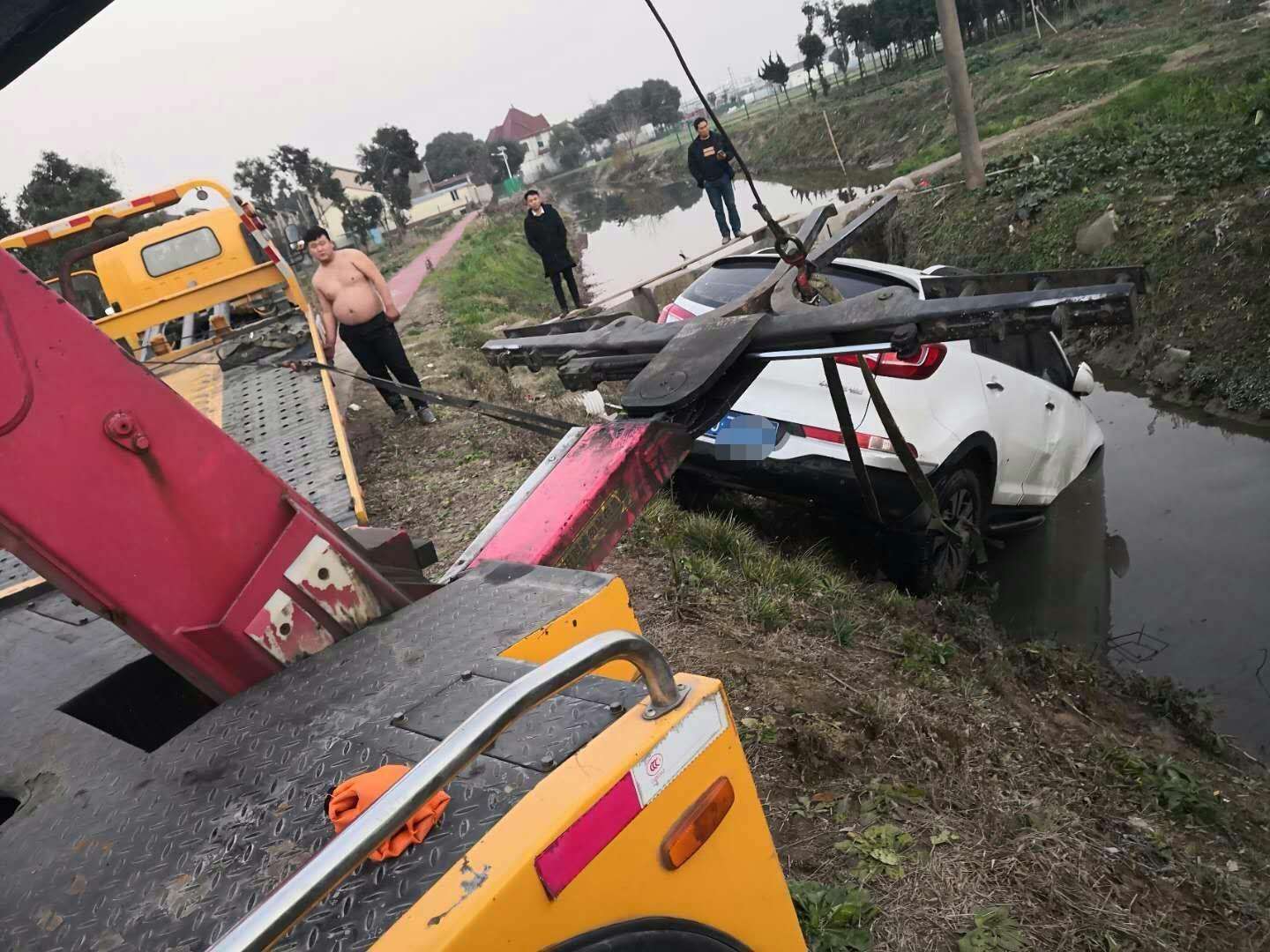 2019年1月18上海春驰接到平安事故车辆救援信息。客户行驶不慎,掉入位于宝山江陈路农村的排水小河沟。农村只有一条小路,大车开不进去,无法安排吊车进行救援。经过对现场环境判断,春驰派出2部小车(1拖吊1板车)进行现场救援。当救援师傅到达现场,分析现状,需要下水,在将近0度的情况下,下水进行车辆绑缚,由于对事故车辆重心判断准确,在春驰两部车的通力协作下,客户车辆脱离困境,人员和车辆得到救助。