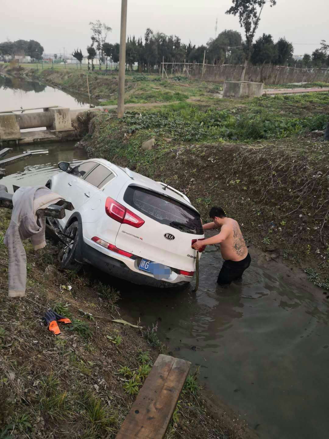 2019年1月18上海春驰接到平安事故车辆救援信息。客户行驶不慎,掉入位于宝山江陈路农村的排水小河沟。农村只有一条小路,大车开不进去,无法安排吊车进行救援。经过对现场环境判断,春驰派出2部小车(1拖吊1板车)进行现场救援。当救援师傅到达现场,分析现状,需要下水,在将近0度的情况下,下水进行车辆绑缚,由于对事故车辆重心判断准确,在春驰两部车的通力协作下,客户车辆脱离困境,人员和车辆得到救助。